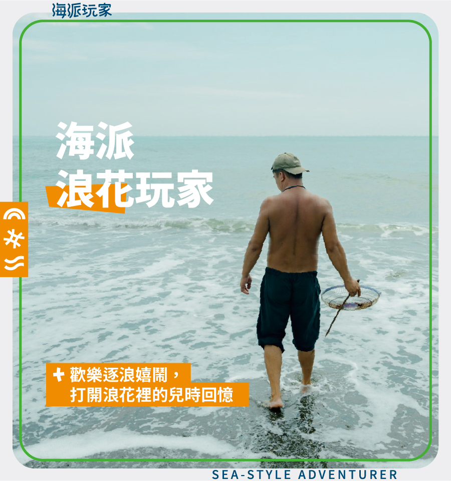 你有見過浪花蟹嗎?小巧精明的「浪花蟹」乍看之下就像是一顆小石頭,混跡在沙灘裡堪稱絕對的偽裝大師。究竟要在哪裡才能找到浪花蟹的蹤跡?如果你對浪花蟹的習性沒有了解的話是絕對找不到他的!隱藏在浪花拍打的沙灘上,要找到它們,除了需要耐心慢慢等待;卻也要跟浪花搶快,趁浪潮退去時,快速挖洞埋放置捕捉浪花蟹的陷阱。快來挑戰看看吧,這可是一門與浪賽跑、與蟹鬥智的趣味濱海體驗喔