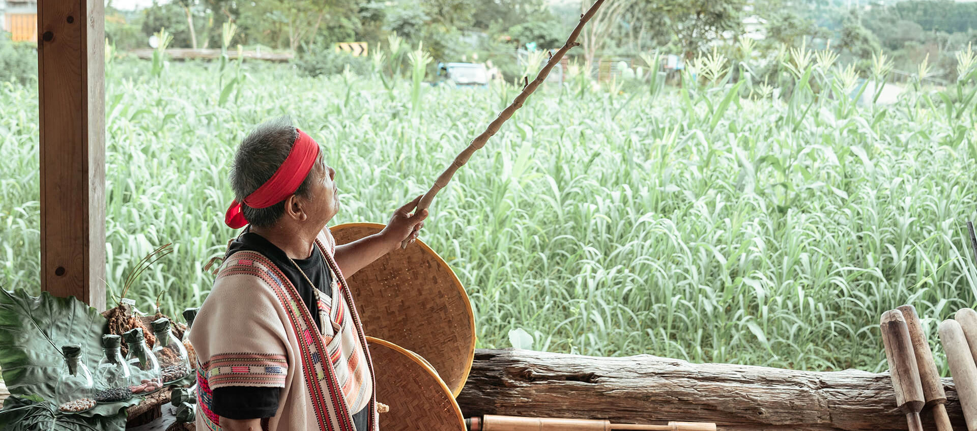 掛曬在屋簷下的小米串,封存了族人對傳統作物的情感。